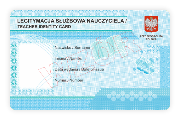 Elektroniczny dokument identyfikacyjny przeznaczony dla nauczycieli. Wyposażony w chip RFID w standardzie MIFARE Classic (NXP) działający na częstotliwości 13,56 MHz, pozwala na bezpieczną identyfikację oraz integrację z systemami kontroli dostępu, rejestracji czasu pracy, bibliotekami i innymi systemami informatycznymi w placówkach oświatowych.